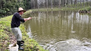 fundo colocadas aí não esse lado na verdade aqui na piscicultura Edson Esse era o meu Lago que eu tinha algumas Matriz de lambari ou retirá-los dali deixou um pouquinho para trás e entrou algumas tilápias invadir pela tubulação de água invade algumas tilápia saber que não era revertido elas reproduziram e o lado notou de peixe então aonde poderia ter ali 1500/2000 peixe Eu já devo ter mais de 10 mil 15.000 20 mil não sei quantos peixes tem no dentro tudo desse desse desse desse tamanho Então chegou numa situação que tudo que eu jogar de ração ali