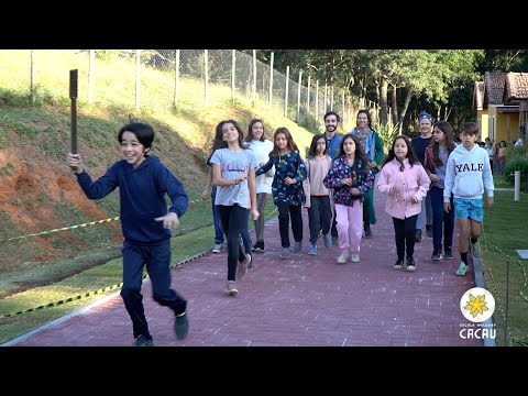 Hoje é um dia histórico dia 11 de Agosto a tocha dos jogos gregos chegou na Cacau e vai fazer um percurso aqui na escola e depois vai seguir para outras escolas que vão participar dos jogos gregos em setembro na escola Veredas em Campinas As crianças estão assim vivendo um momento muito especial um momento pedagógico um momento importante que vamos acompanhar e vamos mostrar para vocês [Música] e qual que é a ideia vocês vão carregar essa tocha até lá na frente o professor vai trazer a taxa de lá aí cada um vai pegar aí eu vou