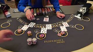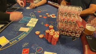 cards see here come you get how much 25 oh wow 2500 bucks so back to back yeah I've noticed some casinos have a lot more of the sort of inside I don't want to say sucker bus but there's a lot more you can another one coming that's called the barbecue whichever side you're on you're on the sixth or the seventh side four [Music] so if you would have improved would I have gotten another card that hand the four the four it depends on if he draws a 2 3 4 5 6 or a seven that's