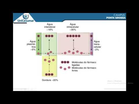 líquido intersticial e 28 litros de líquido intracelular somando da 40 litros esse é o volume real de distribuição que o fármaco tem para circular dentro do nosso organismo mas na farmacologia existe um outro parâmetro chamado de volume aparente de distribuição ou ver de vender um parâmetro não é algo concreto é o volume no qual seria necessário dissolver a droga para que ela ficasse em equilíbrio nos tecidos inoplas então nessa definição a é de droga no sangue é aquela observada após a sua absorção e antes da eliminação e as partir de diz que a gente avalia