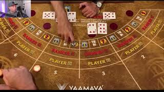 and we'll go 10 on the tie there too baby yes right in the wave clear wave okay so we'll go 350 and I need uh and change please it's 350 one two three yeah three three fifty change we'll increase the pairs and the Tie by ten now 10 10 10. all right great streak run though from the player so we'll go back to Banker start with 75 we'll go back to a nickel on our Pairs and on the tie yep we'll go back to player change please [Music] okay so far no pairs no one tie we weren't playing it yeah thank you all right we're chopping so that was that was Banker yep okay so we'll go 100 on player later okay yeah okay we got eight to one eight to one keep the bed the same so 40 bucks on the tie therefore okay get a pair we need player it's not over yet so we got 11 nickels there nice looks good yeah four four and a tie okay all right cool nice doing business with you all right cool that's it oh wait wait yeah one yeah yeah come on player seven that was Banker huh all right we'll go 101 player we'll go 10 10 10 10. 12 minutes okay I love you guys should get me delivery thank you Andrew all right we're gonna keep it we're gonna go 125 on the player and we'll go five on the pairs five on the tie okay we need some help nope [Music] we'll keep it on player okay four four reduce oh no card huh oh good oh hey I'm not arguing it's a tie yeah [Music] okay deuce deuce six yes okay I got that one [Music] we will bring it up to 125.