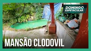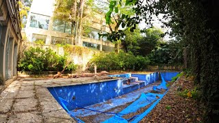 perceber melhor os sinais de desgaste provocados pelo tempo e isso não aparece só na fachada da casa não na área externa também existem vários sinais aqui na piscina por exemplo sem manutenção muita sujeira acumulada ea água já começa a transbordar por causa da chuva este espaço é a churrasqueira e olha só como ela está hoje aqui funcionava uma sopeira aqui um fogão ali as churrasqueiras elétrica e no fundo um forno além do mato já toma conta de tudo em agosto deste ano a casa foi a leilão pelo mesmo valor de agora mas não apareceu nenhum