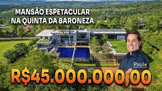 quem ainda mais pela casa que está entre as maiores e mais luxuosos do brasil o lance inicial é para poucos 78 milhões de reais nossa equipe fez uma visita completa essa incrível construção que mostra o que ela vai a leilão pela segunda vez por ordem da justiça uma mansão com paredes e janelas dois blindados um pé direito de nove metros de altura três elevadores e lhe conto duas piscinas [Música] e uma vista de tirar o fôlego até o que não está à vista impressiona esta é uma das três casas de máquinas que existem na mansão