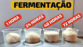 de bolhas na superfície para a massa ficar ainda mais saborosa Eu recomendo fortemente que você faça segunda fermentação na geladeira por no mínimo 12 horas durante esse período ela vai desenvolver outros aromas e Sabores muito mais complexos eu sugiro deixar no máximo os 48 horas na geladeira a partir daí a massa pode perder estrutura e começa a Gerar aromas mais fortes é essa aqui do vídeo deixei por 36 horas na geladeira a Massa agora estou super bem veja também que a massa não cresce muito na geladeira vamos agora dividir e bolear a massa transfira para