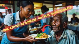 Luana uma jovem garçonete Negra trabalhava duro em um restaurante no centro da cidade apesar das dificuldades ela sempre mantinha um sorriso no rosto e fazia o possível para atender bem os clientes naquele dia enquanto servia as mesas algo chamou sua atenção pela janela um homem em situação de rua estava parado na calçada suas roupas sujas e o olhar faminto tocavam o coração de Luana ele observava as pessoas comendo como se pudesse sentir o sabor dos Pratos apenas com os olhos Luana sentiu um aperto no peito não podia ignorar aquela cena ela foi até a cozinha