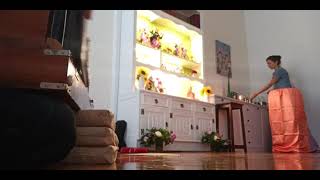 the translation and then there's a few passages that i picked that i'll comment on from the commentary to this particular verse which was written in the commentary was written by ac bhaktivedanta swami prabhupada you can see his little statue on the bottom left of the altar there with his finger like this he's the founder of the international society for krishna consciousness and and he translated and commented on on the main texts that that we in this room who practice bhakti yoga read on a regular basis but the text itself which was written about 500 years