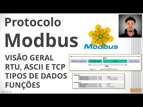 E aí galera beleza na aula de hoje a gente vai ter uma introdução aí sobre o protocolo mod bus Eu pretendo apresentar para vocês uma pequena introdução falar um pouco das vantagens da arquitetura de clientes servidor que é usada no protocolo falar um pouquinho dos tipos principais centros dá muito em detalhes falar um pouco então da estrutura dos tipos de dados e das funções principais então se liga aí nessa aula bom protocolo mod bus foi criado em 79 pela mod com que hoje é a Schneider Electric na época ele foi criado para que a empresa pudesse desenvolver e Transferir dados entre os próprios equipamentos fabricados pela empresa e hoje quem controla né esse protocolo quem faz toda a padronização e certificação é a mod bass organization Quais são as vantagens do protocolo mod bus bom ele já foi criado pensando em algumas aplicações industriais ele tem um formato de mensagem bem simples em comparação com outros protocolos tá e Outra vantagem dele é que ele é aberto isso quer dizer que ele é livre de taxas Então pode desenvolver equipamentos compatíveis com ele na internet tem muito material muito tutorial muito equipamento disponível sobre esse protocolo e tem muitas bibliotecas também para Arduino para vários microcondicionadores para você já saiu usando ele e comunicando outra coisa interessante que ele não define o meio físico então tu pode utilizar ele sobre uma série de meios físicos diferentes e ele é relativamente fácil de implementar e configurar uma vez que tu entende as funções os tipos de dados e a estrutura né do protocolo bom um dos principais conceitos é o cliente servidor então qualquer equipamento que queira trocar dados ele vai ser um cliente que vai fazer requisições então para alguns servidor o servidor vai ser algum dispositivo na rede que você quer acessar quer mandar comandos quer ler algumas variáveis então aqui por exemplo a gente tem um CLP como um cliente fazendo requisições para um servidor que seria por exemplo um inversor e esse servidor então responde a essas requisições do cliente confirmando ou não os Comando por exemplo pessoal Quais são os principais tipos de clientes em aplicações industriais computadores rodando alguns sistemas provisório clps que vão estar ali enviando comandos e hms que vão estar acessando dados de algum controlador e exemplos de servidores Então a gente tem inversores alguns sensores atuadores módulos de entradas e saídas inversores de frequência por aí vai tá que vão receber então essas requisições E como eu vinha falando pessoal mod bus ele é um protocolo de camada de aplicação tá então ele vai ter ali algumas funções definidas para que a gente possa enviar comandos né e em geral qualquer equipamento qualquer servidor vai ter alguns endereços né que são posições digamos assim de memória que a gente acessa que vão me apear todas as entradas e saídas então quando a gente quer fazer uma leitura uma escrita a gente vai acessar um registrador que tá associado alguma entrada e saída e ele pode ser usado então como eu falei em várias camadas físicas diferentes tá o que vai mudar ali é que se a gente tiver usando mecanismos como a dois três dois meios físicos perdão e a 485 que são protocolos cereais a gente vai usar um mecanismo de mestres escravo ou seja vai ter um mestre na rede e os demais dispositivos os servidores vão ser escravos ou no caso da wi-fi ou da internet a gente vai usar csma CD ou outros meios aí de acesso beleza bom pessoal três principais tipos de mod bus o Mod bus TCP que vai ser utilizado em redes ethernet então que é 802. 3 e wi-fi 802. 11 nesse tipo de aplicação a gente vai usar o protocolo TCP a porta 502 e por exemplo nessa aplicação a gente tem um CLP que é um cliente que está determinado setado um IP nele e através de um Switch a gente vai ligar vários servidores então que vão ser os módulos de entradas e saídas e outros dispositivos aí e esses clientes Então vai abrir a porta 502 e enviar ali uma sequência de bytes que são as requisições já o Mod bus rtu e o Ask geralmente eles são utilizados em meios físicos cereais como o 485 no caso do 485 a gente consegue montar aqui um barramento com um cliente e vários servidores vários escravos no caso ele usa mestre escravo isso quer dizer que só o CLP Pode fazer requisições os escravos precisam só devem responder essas requisições tá E outra coisa importante cada escravo nessa rede vai ter um endereço aqui vai ser geralmente configurado na própria e hm aqui do equipamento através de algum mecanismo de Chaves geralmente a gente usa de 9.