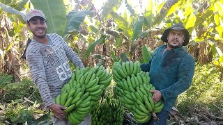 Olá pessoal tudo bem Espero que sim pessoal no vídeo de hoje continuar continuando aquele outro vídeo que a gente veio aqui mostrou o corte de banana Como como que chega a banana no trilho né Ela conversa boa que nós tivemos dentro do Bananal aí E hoje nós viemos mostrar pessoal o embalamento da banana como que é feito né questão de pesos de caixas de banana e que como que funciona realmente o embalamento de banana e de banana boa né vocês vão ver tem uma ideia de como que é os caixas de banana de novo vou