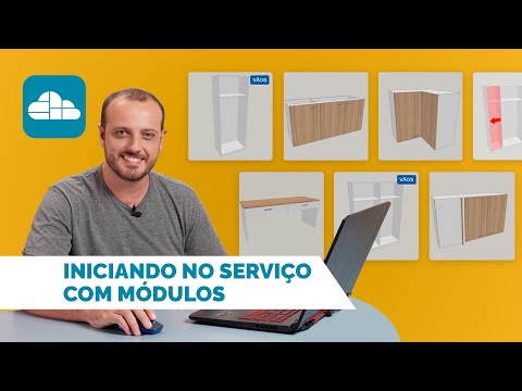 meus projetos na sequência eu vou criar um novo serviço nesse botãozinho aqui novo serviço e vai ser um serviço com módulos então só selecionar ok uma vez que a gente acessou aqui o serviço com módulos nós conseguimos ver todos os módulos que tem disponível eu tenho várias estruturas com vãos que é esse botãozinho azul aqui e isso são módulos que eu consigo montar né colocar coisas dentro e eu tenho módulos prontos também que já tem porta tem gaveta que eu consigo ajustar também todos eles são totalmente configuráveis tá só vou passar rapidinho aqui ó pra