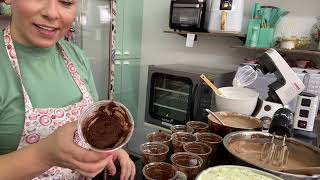aqui não dá para visualizar mas você viu que ele tem uns pedacinhos de alguma coisa né então quando esse vídeo bater 2000 joinhas eu ven ensinando boníssimo que é maravilhoso aqui pra montagem dos meus copos eu tenho bombom Sonho de Valsa Morango tudo bem higienizados Tá morango e uva e olha aqui que delícia e o cheiro dessa cozinha gente o cheiro dessa cozinha é maravilhoso tudo muito limpinho bancada limpinha aqui eu uso muito Nutella também para PR passar nos copos olha aqui gente o recheio boníssimo que lindo viu ali eu tenho o bolo de chocolate
