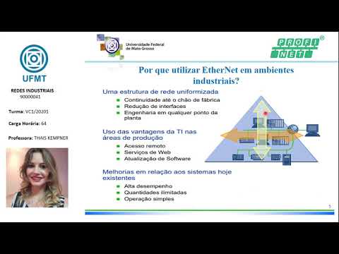 E aí o Olá tudo aqui a professora Thaís quente né e Hoje iremos dar continuidade à nossa disciplina de redes industriais o objetivo da aula de hoje é definir os conceitos as características e as e as aplicações não protocolo conhecido como protocolo profinet protocolo profinet ele é um protocolo de automação normalizado pela associação pro Bass internacional para implementação integração de soluções baseadas em ethernet Industrial se vocês observarem o símbolo que a gente tem aqui em cima né representando aqui a logomarca da profinet vocês vão ver que ele é bem semelhante ao provas tá isso porque