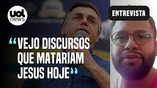 desse discurso subiria no público junto com essas pessoas o Cristo já tá junto com os milhões de brasileiros que estão passando fome porque o Brasil voltou a pomada para fome Hum será que Cristo estaria nesse discurso de ódio em relação à população LGBT ou será que ele estaria junto com as transexuais que são agredidas e mortas diariamente vamos lembrar o evangelho Cristo tava do lado da Mulher Samaritana Cristo falou para aqueles que queriam apedrejar a mulher adúltera que jogasse a primeira pedra aquele que não tem pecado Cadê o discurso de cristo dentro dessas igrejas que