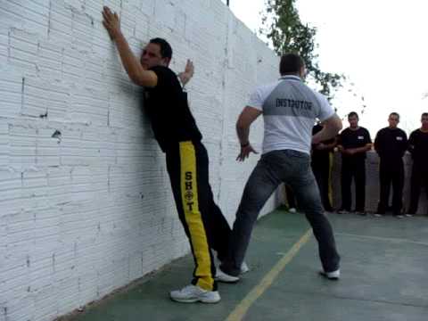 incomodado está forçando os braços dele está forçando a cara dele na parede ele já tá com pouco equilíbrio aqui e a abordagem é um pouco mais diferente é mais fácil para mim esse tipo de abordagem Mesmo eu estando sozinho Ok vou até ele chegar próximo dele Armando codre Ok a minha mão vai diretamente no ombro dele forçando a cara dele mas ainda na parede para evitar que ele deu uma cotu velada em mim reaja a minha abordagem entendido senhores sim senhor presta atenção vou chegar próximo dele cheguei próximo ó a posição das minhas pernas sempre