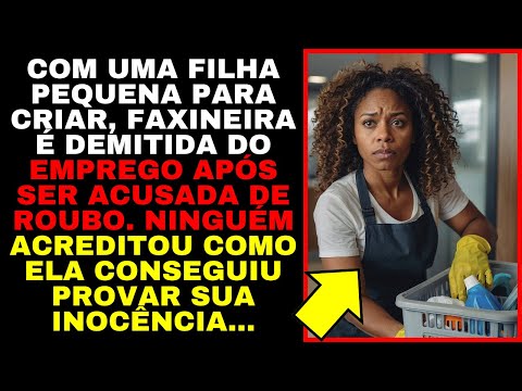 com uma filha pequena para criar faxineira é demitida de seu novo emprego após Ser acusada de roubo mas ninguém acreditou no que ela estava disposta a fazer para provar sua inocência certa manhã enquanto caminhava pela cidade Rebeca Medeiros observou uma grande placa Dourada que pendia sobre a entrada de um banco vaga para fachineira candidaturas abertas dizia o anúncio em letras maiúsculas ela parou um momento com a mão no puxador da porta de vidro reluzente e respirou fundo era um dia claro mas o frio cortante parecia atravessar suas roupas e tocar seu espírito nos últimos meses