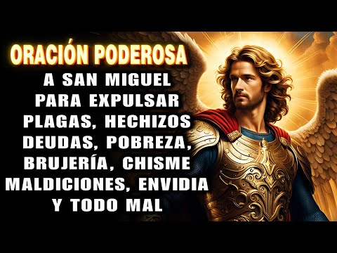 la paz y la santidad Amén Oh San Miguel Arcángel poderoso defensor y Guardián celestial te extiendo Mi humilde oración con tu espada de fuego y tu armadura de luz enfrenta las batallas espirituales que azotan mi vida Te pido San Miguel que me protejas contra las fuerzas del mal y que elimines toda negatividad e influencias malignas que intenten desviarme del camino de la justicia Que tu luz divina disipe las tinieblas que se acercan y que tu fuerza celestial me fortalez ante la adversidad con fe inquebrantable pongo todas mis preocupaciones dolores físicos y angustias espirituales a los