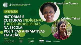 que assim como as anteriores e dessa né será muito especial quando nós trataremos do tema histórias e culturas indígenas e afro-bras na escola políticas afirmativas em ação com a participação da professora Nilma ali no Gomes ex ministra das mulheres da igualdade social e dos direitos humanos e da professora Cristine Itaquá que é uma professora indígena formadora de professores com uma larga experiência nas várias e múltiplas expressões da cultura indígena que precisa com tanta riqueza que deve deve ser incorporada no miolo das propostas curriculares e das atividades educacionais das nossas escolas e das nossas redes bom