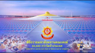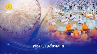 เพราะฉะนั้นหยุดให้จึงเป็นตัวสำเร็จ ให้ได้บรรลุมคลนิพพานบรรลุธรรมได้ตามที่ พระเดชคุณหลวงปู่ของเราท่านได้กล่าวเอา ไว้ เพราะฉะนั้นให้เราฝึกตรงนี้กันให้ได้นะ จ๊ะฝึกหยุดฝึกนิ่ง อย่างเบาๆสบายๆ พอถูกส่วนใจก็จะหลุดจากสภาวะหยาบ ไปสู่สภาวะที่ละเอียด คือกายก็เบาขึ้นใจก็เบาขึ้น ใสขึ้นบริสุทธิ์ขึ้น โปร่งขึ้นโล่งขึ้น วางไปเรื่อยๆ จังทั้งเหมือนไม่มีตัวเหมือนไม่มีร่างกาย จะหายไปเลย หรือใจที่นิ่งอย่างเดียว เมื่อความรู้สึกกับความสบายสั่งสมมากก็ เคลื่อนไปสู่ภายในแล้วก็เห็นไปตามลำดับนะ จ๊ะ เพราะฉะนั้นให้เราฝึกตรงนี้ให้ได้ ฝึกหยุดแลกให้ได้ซะก่อน ฝึกซ้ำๆ ทำให้เป็นตรงเนี้ยฝึกใจหยุดใจนิ่ง ใครคุ้นเคยกับการวางใจนิ่งเฉยๆ ก็ให้ใจนิ่งเฉยๆนะจ๊ะ ใครจำเป็นจะต้องมีที่ยึดที่เกาะของใจก็ กำหนดบริกรรมกรรมในมิตขึ้นมาในใจ เป็นดวงใสๆ หรือองค์พระแก้วใสๆ ขนาดไหนก็ได้นะจ๊ะ อย่างใดอย่างหนึ่ง ให้เกิดขึ้นที่ศูนย์กลางกายฐานที่ 7 แล้วก็ประคองใจอย่างสบายๆ ประคองใจให้หยุดให้นิ่ง ด้วยบริกรรมภาวนา ในใจเบาๆว่า สัมมาอะระหัง สัมมาอะระหัง สัมมาอะระหัง ทุกครั้งที่เราภาวนา สัมมาอระหัง เราจะต้องไม่ลืมตรึกนึกถึงดวงใส ใจหยุดอยู่ที่กลางดวงใสๆ หรือองค์พระแก้วใสๆนะจ๊ะอย่างใดอย่าง หนึ่ง สำหรับผู้ที่ ถนัดในการนึกเป็นภาพเพื่อให้ใจมีที่ยึด ที่เกาะไม่ฟุ้งไปคิดเรื่องอื่นนะจ๊ะ เราก็ทำอย่างนี้ ส่วนใครถัดนิ่งเฉยๆก็นิ่งอย่างเดียว เพราะตอนสุดท้ายสภาวธรรมของใจที่ บริสุทธิ์ก็จะเหมือนกันเมื่อตกศูนยเข้าไป สู่ภายใน ก็จะมีดวงใสๆลอยขึ้นมา ซึ่งแตกต่างจากดวงที่เรากำหนดเป็นบริกรรม นิมิต เพราะว่ามาถึงความสุขความบริสุทธิ์ ความชัดใสความสว่าง และใจที่มีปีติสุขหล่อเลี้ยงอยู่ตลอดเวลา ให้กลันจิตกลันใจกันไปอย่างนี้นะจ๊ะ สัพเพพุทธาปะลัปะตาปัเจกานัญยัง พะลัง อะระหันตานัญเชนะระขัง วันทามิสัพพะโส เตะรัตาสุขิตาวิรุณหาพุทธสาสะเนคา สุขิตาโหสะหะสัพเพหิยะทิพี สัพพะพุทธานุภาเวนะ นะสัพพะธัมมานุภาเวนะ สัพพะสังฆานุภาเวนะ สัทธาโสถี ภะวันตุเต >> สาธุ >> ลำดับต่อไปเป็นการกล่าวคำถวายปัจจัย 4 เป็นสังฆทาน สำหรับผู้แทนสาธุชนนำกล่าวคำถวายปัจจัย 4 เป็นสังฆทานคือกัลยาณมิตร ธัญญพรเสรีวัฒนวุฒิ และกัลยาณมิตรวิรงรองรัตนฉายา หันทะมะยัง พุทธัสสะภะคะวะโต ปุพะภาคะนะมะการัง กะโรมะเส นะโม ตัสสะสภะคะวะโต อะระหะโต สัมมาสัมพุทธัสสะ >> นะโม ตัสสะภะคะวะโต อะระหะโต สัมมาสัมพุทธัสสะ >> นะโม ตัสสะภะคะววะโต อะระหะโต