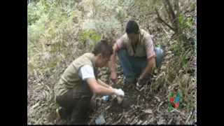 aqui a gente tem o material que a gente precisa para limpar o local de coleta é com a machadinha um conjunto de ferrolho que a gente chama de espec para poder fixar armadilha no chão o e as cordas necessárias para poder amar armadilha no local para montagem do subcampo a gente vai precisar de uma lona que vai servir de abrigo contra a chuva eo sol as cordas para fixar e levantar aluno Uma mesa e cadeiras que vão servir de apoio ao trabalho e uma barraca para a gente descansar ao longo da noite além da armadilha