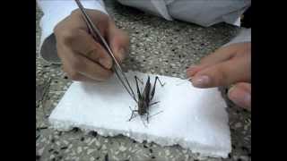 vão ser necessários materiais para coletar os insetos depois que eles pousarem no pano insetos da ordem lepidoptera precisa ser manuseados com uma pinça de bico chato de filatelia para evitar danos as asas os insetos de outras ordens podem ser manuseados com uma pessoa comum os insetos grandes vão ser sacrificados com uma injeção de amônia na face ventral entre o tórax eo abdômen os insetos menores precisa ser sacrificados no botão câmera Mortífera contendo amônia essa câmera Mortífera pode ser substituída por um vidro com algodão no fundo e um ciclo de papel em cima do algodão depois