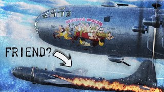 Target boog's 11:00 High we saw and that was uh really woke us all up really and there they were uh 6 Zer and two bombers as Mitch said we only planned on one well we climbed up as Mitchell said and then Mitch said go get him Tom and so Tom and and his wife broke off and headed toward the bombers well we could see these three zeros coming down and we knew that just about the time that we rolled in on the bombers that they would be right on our tail and so uh Tom turned